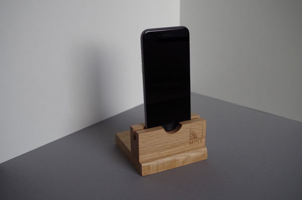 Die Mole Dockinstation, ist für das IPhone 6 und passt, durch seinen natürlichen Werkstoff, perfekt auf jedes Möbel. Verwendet wird hier Eiche und die Oberfläche ist mit einem matten Hartwachsöl behandelt. Zum Entfernen der Abdeckung des Kabels benötigen Sie lediglich einen Kreuzschraubendreher. Unter der Abdeckung befindet sich eine Gummierung, die das Verrutschen des Kabels verhindert.