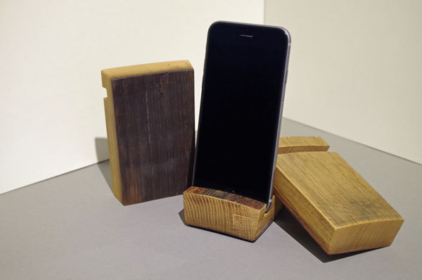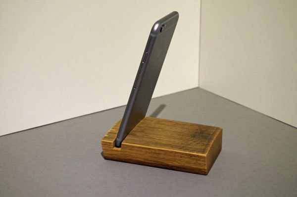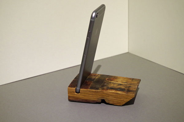 Daube Handyhalterung geschnitten aus einer Weinfassdaube, passend für Handys mit einer Stärke von bis zu 8-9mm.